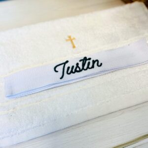 – Fașă brodată cu numele copilului.